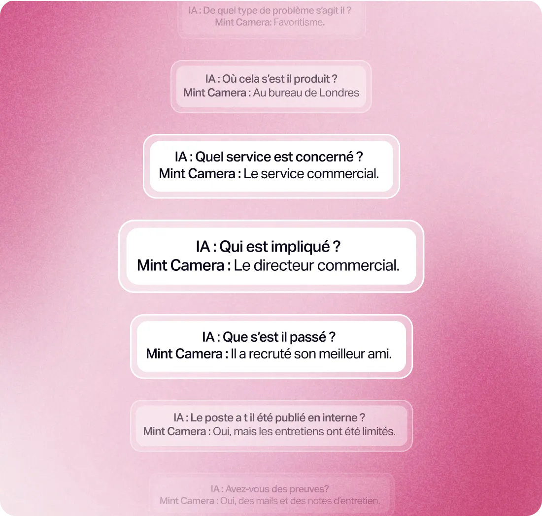 À la différence des centres d’appels externalisés ou des systèmes de messagerie vocale, Whispli garantit un processus de recueil homogène et auditable. L’agent IA enregistre et structure les signalements vocaux conformément à vos workflows d’investigation.