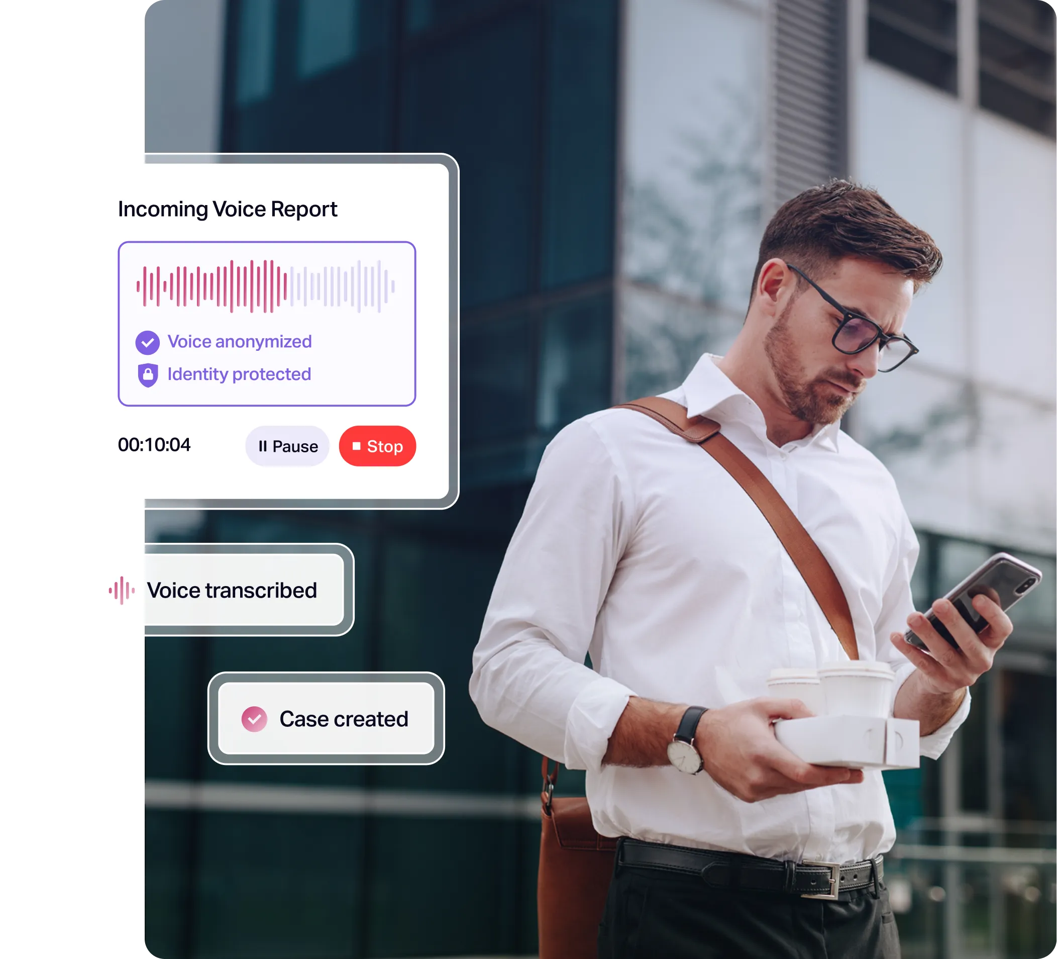 Unstructured voice conversations are automatically transformed into structured cases, with key information extracted, organised and ready for review.